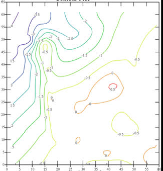 The steps involve creating an accurate CAD plan of the foundation with elevation readings. The elevation readings in CAD are established as a Y coordinate. Overlay the plan with a rectangle that encompasses the out-to-out dimensions of the floor plan and set the bottom left hand corner of your rectangle grid as 0, 0. At this point, you extract the data and follow a series of steps that sets the elevation points up for the contour plot, saves the property as an Excel file and then imports the Excel date into MathCAD. MathCAD then converts the points to vectors and plots the vectors as a contour map. The full and exact steps may be seen on the Clark presentation slides (see link below).